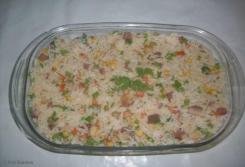 Cozinhe o arroz, em seguida em uma frigideira teflon, coloque uma colher de manteiga e vá passando um a um dos ingredientes, por úlltimo a cenoura Junte tudo depois de passado a manteiga e junte ao arroz, mexendo bem