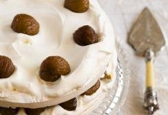 Prepare o chantilly: Na batedeira, bata o creme de leite até obter picos moles. Adicione o açúcar e continue batendo até formar picos firmes. Em um prato, monte o besée alternando camadas de suspiro, chantilly e castanhas. Leve à geladeira por uma hora e sirva.