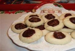 4.Faça bolinhas de massa e coloque-as numa assadeira (não precisa untar). Faça uma cavidade no centro de cada bolinha, pressionando com o dedão. Coloque uma cereja em cada cavidade.