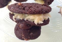 Biscoito de chocolate: Em uma tigela, misture os ingredientes secos, a farinha, o cacau, o bicarbonato, o fermento e o sal. Reserve. Coloque na batedeira a manteiga, a margarina, o açúcar e o açúcar mascavo e bata até ficar cremoso. Adicione o ovo e a baunilha. Acrescente os ingredientes secos. Desligue a batedeira e coloque as castanhas. Deixe a massa descansar por 2 horas na geladeira. Faça bolas com a massa, amasse com as mãos até ficar em formato de biscoito e coloque no papel manteiga. Leve para assar em forno baixo de 10 à 15 minutos.