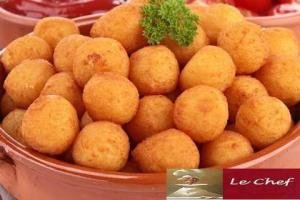 Recheie cada bolinha com um cubinho de mussarela ou de presunto.
