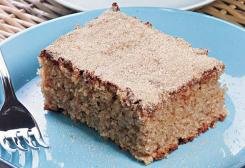 Bata no liquidificador o óleo, o leite, as gemas, a canela e as cascas de banana. Em um recipiente, misture o açúcar, a farinha de trigo e o fermento, acrescente a mistura batida no liquidificador, por último junte a banana picada e as claras em neve. Coloque em uma forma retangular untada com manteiga e leve ao forno preaquecido a 180ºC por aproximadamente 25 minutos. Espere esfriar, desenforme e polvilhe a canela e o açúcar.
