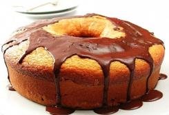 6. Na fôrma untada, coloque a massa e leve ao forno para assar por 50 minutos. Para verificar se o bolo está assado, espete um palito. Se o palito sair limpo, está pronto. Retire do forno, deixe esfriar por alguns minutos e desenforme sobre um prato.