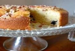 Misture o extrato de amêndoa na água quente. Em seguida, ponha a cereja de molho na água por 20 minutos. Escorra e coloque as cerejas entre pedaços de papel toalha, para que sequem. Reserve. Em uma tigela grande, misture a farinha, o sal, o fermento em pó e o açúcar. Acrescente o iogurte, o ovo e o óleo. Misture bem. Ponha as cerejas na massa, e mexa para incorporá-las. Ponha a massa numa forma redonda de 23 cm que deve estar untada e polvilhada com farinha de trigo. Misture as nozes pecãs com 1 colher de (sopa) de açúcar. Jogue-as por cima da massa do bolo. Asse o bolo no forno a 180 ºC por 35 minutos, ou até que um palito saia seco depois de enfiado no meio da massa. Deixe o bolo esfriar na forma durante 10 minutos. Sirva-o morno ou em temperatura ambiente.