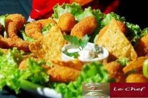Cozinhe os camarões. Triture o DORITOS até ficar bem fino para empanar os camarões e levar para frigideira com um pouco de óleo até ficarem bem crocantes. Use sal a gosto. Sirva com Doritos.