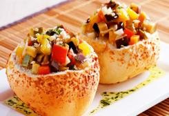 Distribua a caponata nos pães, salpique a castanha e sirva a seguir.