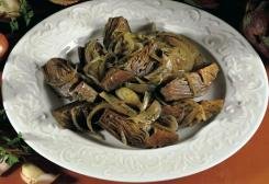 Circa 5 minuti prima del termine della cottura, cospargete i carciofi e le cipolle con il prezzemolo rimasto e serviteli ben caldi.