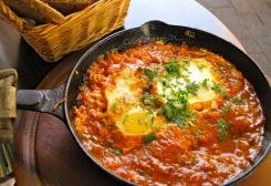 A cottura completata rompete le uova sulla chakchouka e coprite il tegame. Quando gli albumi sono cotti a sufficienza (il tuorlo non deve cuocere) mettete in fondine individuali e servite.