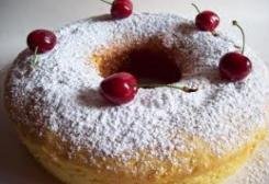 Versare il composto in uno stampo per ciambella imburrato e infarinato. Lavare, asciugare e snocciolare la ciliegie quindi distribuirle sulla superficie del dolce . (In caso di ciliegie sotto spirito o sotto zucchero, basta snocciolarle).