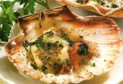 Cuocete le capesante nel forno già caldo a 250 °C per 5 minuti. Raccogliete in una piccola casseruola il burro rimasto, l’olio, il prezzemolo, l’acciuga sminuzzata, una spruzzata di Brandy, l’aglio sbucciato e un pizzico di pepe.