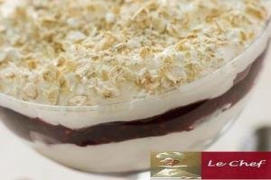 Em taças individuais de vidro, vá formando camadas do preparado de natas, alternadas com framboesas.