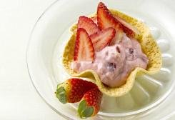 Na batedeira, bata o cream cheese com o iogurte até obter um creme homogêneo. Reserve. Em uma tigela pequena, polvilhe a água com a gelatina e deixe descansar por cinco minutos. Leve ao fogo, em banho-maria, até dissolver bem. Junte ao creme de iogurte. Acrescente o morango picado. Leve para gelar por duas horas ou até engrossar ligeiramente. Distribua o creme entre as cestinhas de massa e sirva decorado com morangos em fatias.