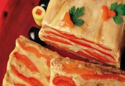6. Recheie, alternando camadas de pimentão, mussarela e berinjela. Aperte bem os cantos.