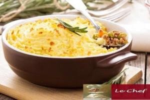 Intercale em camadas parte do purê, o recheio, o restante do purê e as claras em neve.