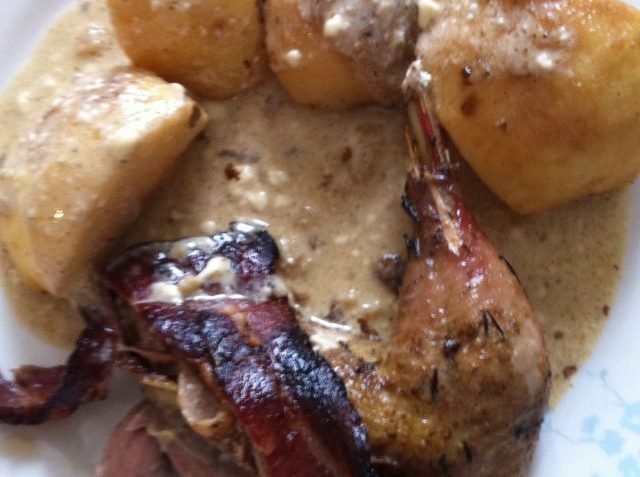 Após 30 minutos, vire o faisão, corrija o tempero do peito e deixe completar o cozimento.