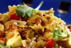 Mentre le verdure cuociono, bollite le farfalle in acqua salata, scolatele e saltatele in padella con il sugo eliminando lo spicchio d’aglio, fate ritirare il liquido di cottura e servite.