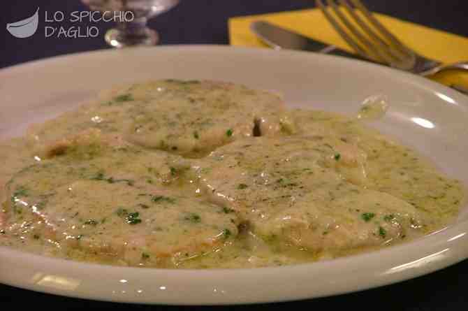 Cortar os queijos em cubos. Ralar o parmigiano. derreter o queijo con o leite em fogo baixo. Picar a salsinha. Fritar as fatias de carne com a sálvia e cozinhá-las por 5 minutos. Cobrir as fatias com os queijos derretidos no leite e cozinhar por mais alguns minutos. Cobrir com a salsinha picada e a pimenta e servir imediatamente.