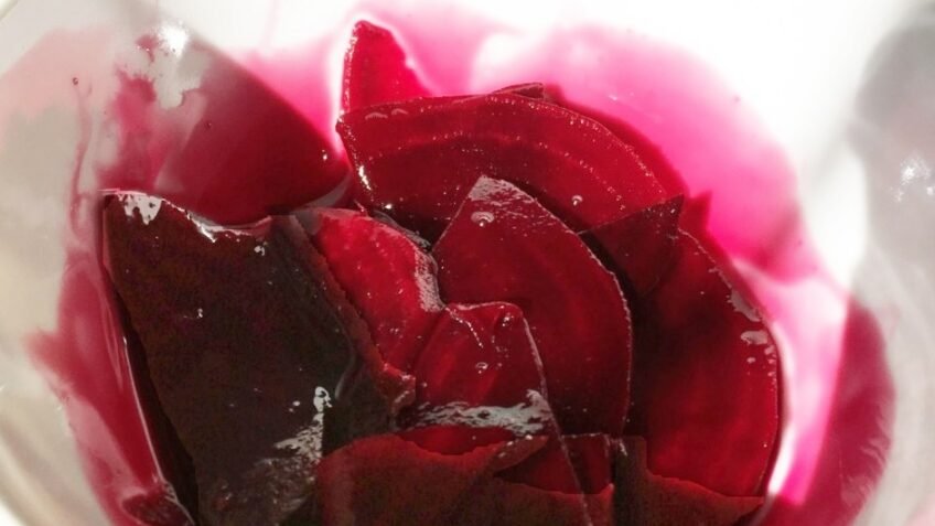 Utilize um peso de fermentação (cerâmica ou vidro) ou um saquinho com água para manter a beterraba submersa.