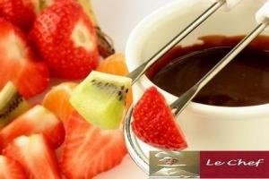 Utilize garfos próprios para fondue, mergulhando no chocolate frutas frescas como morango, banana, abacaxi, maçã, uva, mexerica,ou ainda bolos diet em pedaços ou waffer diet.