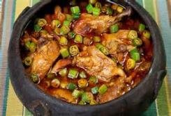 Depois que o quiabo estiver dourado junte o frango e deixe cozinhar com a panela tampada até ficarem macios