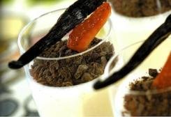 Decorate con il cioccolato fondente ridotto a scagliette, la granella di nocciole, le fragole tagliate a spicchi e i baccelli di vaniglia.