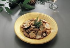 Lasciate riposare la preparazione per 10 minuti, quindi trasferite i funghi su un piatto da portata e serviteli guarnendoli a piacere con un rametto di rosmarino.