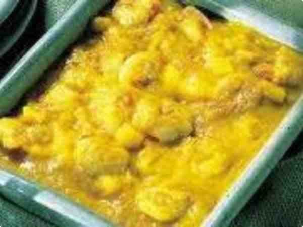 Scaldare il burro, unire la cipolla, l'aglio schiacciato e friggere finchè appassiscano.Aggiungere i pomodori, senza pele e senza semi, passati al frullatore, la mostarda macinata al momento e la paprika; mescolare bene sul fuocoo per qualche minuto. Unire il vino e cuocere fino a ridurre il brodo. Mettere insieme i gamberi, mescolare e cuocere per 5-6 minuti. Aggiungere il coriandolo e il peperoncino q b, mescolare ancora e mettere la panna. Mescolare di nuovo delicatamente e scaldare. Togliere dal fuoco, aggiungere il mango a cubetti, cospargere con 1 cucchiaio di cipollina tritata e servire subito.