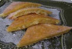 6°- Depois da massa esfriar passe um rolo sobre ela para que fique com uma espessura fininha. Corte a massa em 2 partes, no sentido da largura. Numa das metades coloque o creme de abacaxi (feito acima), depois cubra este creme com a outra metade de massa assada e embrulhe com papel alumínio. Sobre este papel alumínio coloque um peso (2 sacos de 1 k de açúcar ou feijão ou arroz) e leve para a geladeira por 1 hora. Retire da geladeira, corte em triângulos, polvilhe açúcar e sirva em seguida.