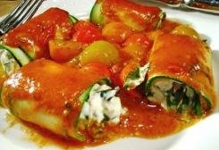 A parte, fate cuocere i pomodori tagliati a cubetti insaporendoli con il sale, il pepe ed il burro. Con questa salsa di pomodoro cospargete gli involti. Servire caldi.