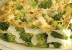 Ungete una pirofila con 10 g di burro, spalmate il fondo con poca besciamella e accomodatevi uno strato di lasagne. Disponete i broccoli e spolverizzate con il parmigiano.