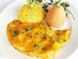 Servire i filetti con il sughetto di mango e capperi e come contorno il riso cotto nell’acqua con lo zafferano.