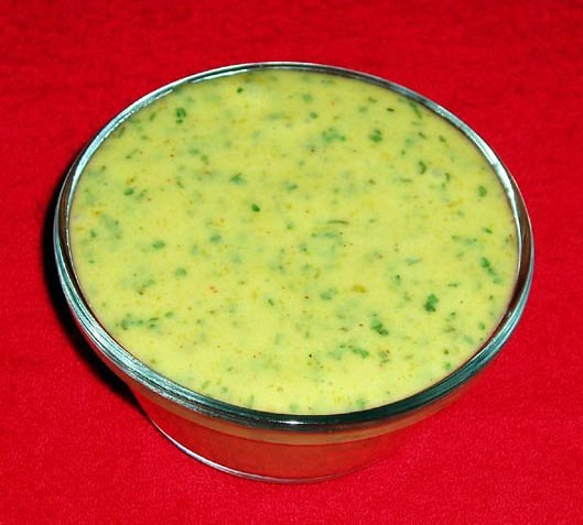 Retira-se do fogo, juntam-se-lhe algumas folhas de estragão ou cerefólio picadas e tempera-se com pimenta-de-caiena e um pouco de sumo de limão.