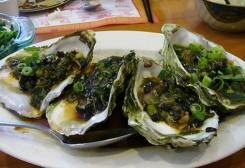 Mescolate i peperoncini, il coriandolo, i fagioli neri e il succo di lime in una ciotola. Distribuite il condimento sulle ostriche e coprite il cestino con un coperchio.