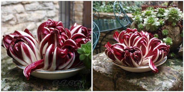Fate appassire la cipolla finemente tritata in una padella antiaderente con 2 cucchiai di olio, aggiungendo un poco d’acqua in modo che non prenda colore. Unite il radicchio mondato, , lavato, sgocciolato, e tagliato a listarelle e cuocetelo a fuoco basso per 15-20 min ; insaporite con un pizzico di sale e una maccinata di pepe, e profumate con una grattata di noce moscata e mezzo dl di marsala.Ammorbidite la gelatina in una ciotola con acqua fredda, strizzatela e scioglietela a fuoco basso in mezzo dl di brandy, mescolando continuamente. Frullate il composto di radicchio e incorporatevi la gelatina.Versate il tutto in uno stampo antiaderente inumidito e mettete in freezer per almeno 3 ore. Sformate il patè su un piatto da portata e decorate a piacere con listarelle di radicchio. Servite il patè con i panini caldi, tagliati a fettine.