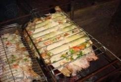 Após 10 minutos vire a grelha para que a parte de dentro do peixe fique virada para a brasa