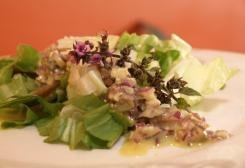 Arrumar as cebolas em um prato e servir com o Soro, Azeite e Pinholes Tostados