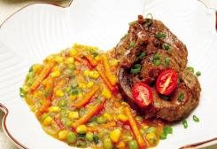Doure o alho no azeite e acrescente todos os legumes, exceto a mostarda e a cebolinha. Refogue por três minutos. Ferva o caldo e junte-o à panela. Em seguida ponha a mostarda. Cozinhe até os legumes ficarem macios, porém firmes. Prove o sal e adicione a farinha aos poucos, mexendo sempre até formar um pirão mole. Forre uma travessa com o pirão e ponha o músculo no centro. Salpique cebolinha e sirva bem quente.