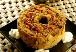 Ponha no liquificador a farinha de trigo, o óleo, os ovos, o fermento, o sal e a pimenta. Bata até ficar uma massa homogênea. Transfira para uma tigela e junte a compota.