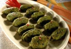 Desfie o peixe assado com as mãos, retirando as possíveis espinhas. Misture o espinafre cozido e picado, a farinha de trigo e o ovo. Tempere com sal e pimenta. Se preferir uma massa mais firme, acrescente farinha. Com duas colheres (sopa) faça os quenelles: passe um pouco da massa de uma colher para outra, até dar formato alongado aos bolinhos. Aqueça o óleo e ponha a massa para fritar diretamente da colher. Retire com uma escumadeira e escorra sobre papel-toalha. Sirva em seguida.