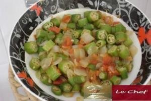 Refogados a cebola e o tomate, adicione o quiabo e coloque sal a gosto.