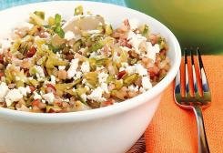 Em uma panela de fundo grosso, ponha o arroz, a cebola e o caldo de galinha. Cozinhe por 45 minutos em fogo baixo ou até que o arroz fique macio. Se necessário, junte mais água quente. Reserve. Em uma frigideira, derreta a margarina e junte a cebola. Frite até murchar. Acrescente a abobrinha e refogue por alguns minutos. Tempere com sal e o orégano fresco. Adicione o arroz, mexa delicadamente e desligue o fogo. Polvilhe a ricota e decore com galhos de tomilho. Sirva em seguida.