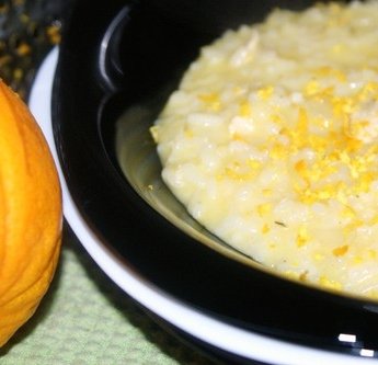 Aggiungere il succo di arance e il brodo di pollo un pò alla volta, finchè il riso sia cotto. Togliere dal fuoco, cospargere di parmigiano, e cipollina.