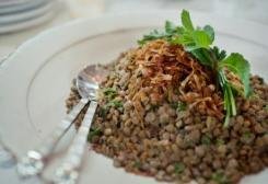 1. Numa panela coloque a lentilha e cubra com três vezes o volume de água. Leve ao fogo médio e, quando começar a ferver, deixe cozinhar por 15 minutos.