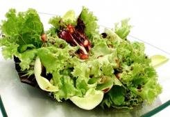 2. Numa tigela, coloque todos os ingredientes, exceto as sementes de romã, e bata com um garfo até ficar homogêneo. Acrescente as sementes de romã e mexa bem. Sirva sobre a salada.