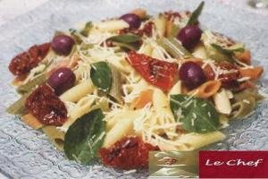 Molho Misture todos os ingredientes até formar uma emulsão. Salada Cozinhe o macarrão al dente, passe na água fria. Misture com os demais ingredientes, regue com o molho e sirva gelado.