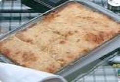 Unte o refratário com manteiga, distribua as fatias de pão no fundo, depois a muçarela fatiada, o presunto fatiado, colheradas do queijo cremoso e outra camada de pão de forma.