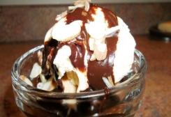 Al momento di servire, utilizzate l’apposito attrezzo per ricavare delle palline che porrete negli appositi bicchieri decorando con la salsa al cioccolato.