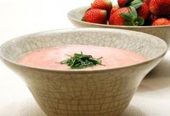 3. Retire o creme do liquidificador e distribua em 2 pratos. Enfeite com folhas de hortelã e sirva a seguir.