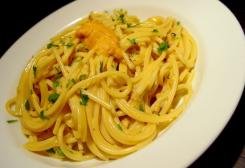 Sbattere con una frusta l’acqua dei ricci insieme con l’olio d’oliva, salare, pepare e con la salsa ottenuta condire gli spaghetti, cospargendoli con gli spicchi di riccio e l’erba cipollina tritata.