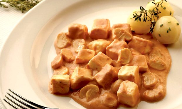 Servire immediatamente con riso in bianco e patate chips a bastoncini.